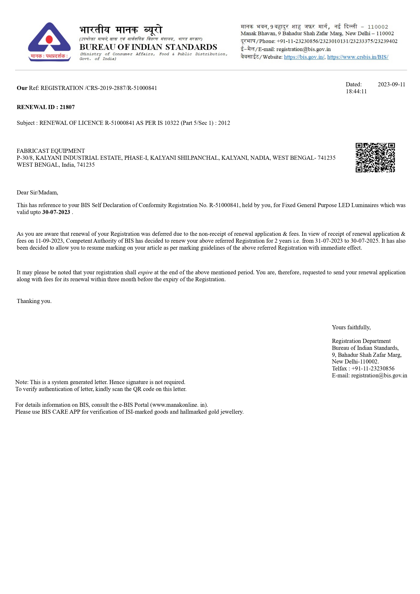 BIS certificate