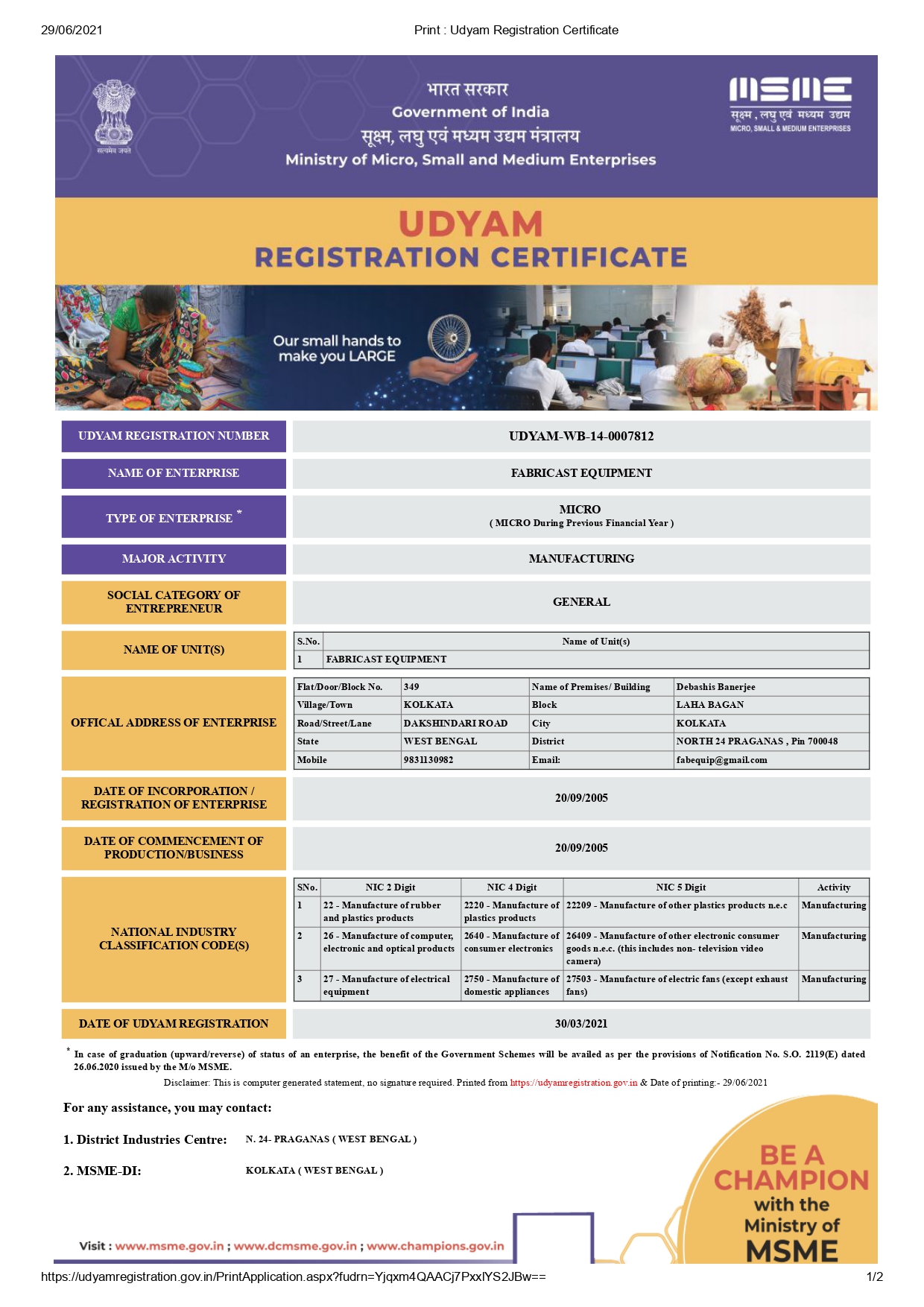MSME certificate